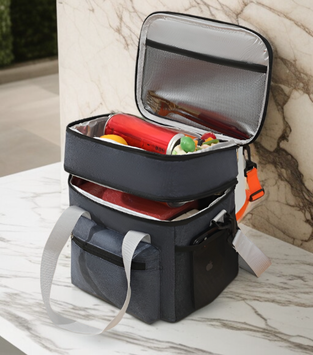신형 이중 보온 도시락 봉지, 내구성 강화, 장시간 보온 유지, 가벼운 무게, 넉넉한 수납 공간, 휴대성 우수, 다양한 디자인, 세탁 용이.