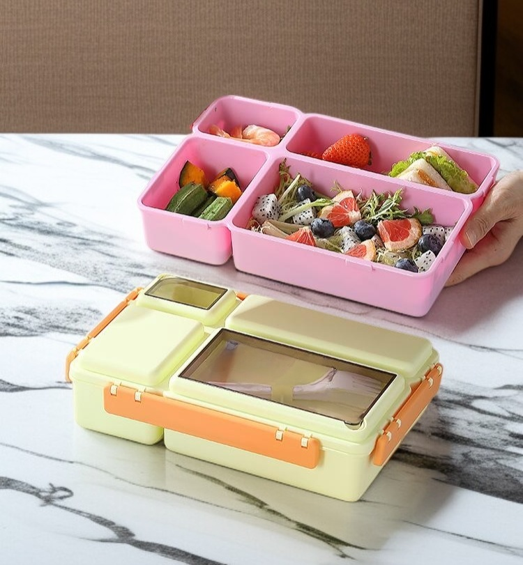 대용량 도시락을 효율적으로 나누는 식기 세트. 내구성이 뛰어나고 위생적인 소재 사용. 다회용으로 경제적. 분리형 구성으로 편리함 제공.
